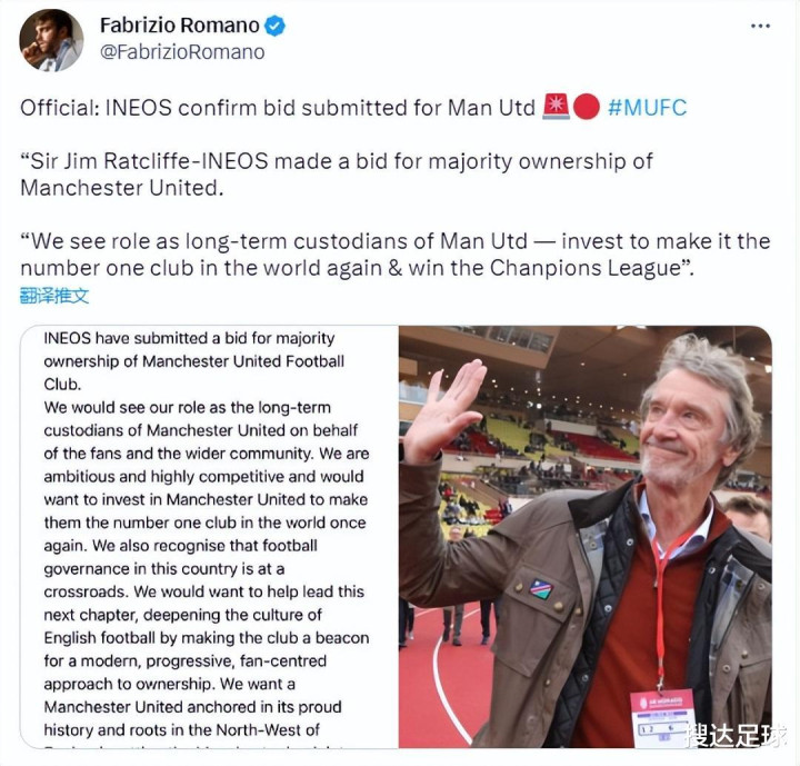 北京时辰2月18日晚上,英力士集团官方阐明皇冠体育注册,拉特克利夫爵士和英力士照旧提交了收购曼联大宗股权的报价。